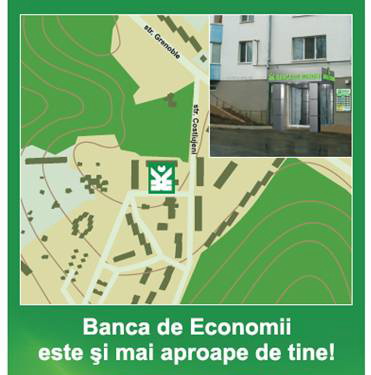 Banca de Economii opened new representation in small town Codru, Costiujeni 6/2 street (Chisinau). Lately, you can benefit of all the bank products and services offered by Banca de Economii, closer to your home: Deposit accounts, Exchange, Money transfers, bank cards, payment of bills and more.